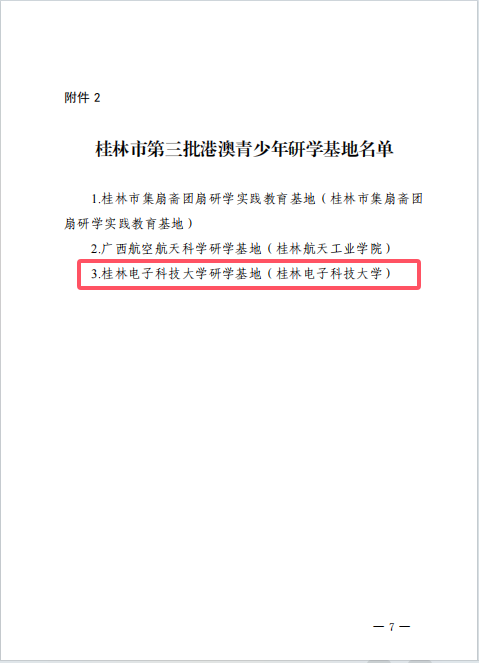 近日,桂林市教育局公布了桂林市第七批中小学研学实践教育基(营)地及第三批港澳青少年研学基地名单,三亿官方官网三亿(中国)_三亿(中国)成功获批桂林市第七批中小学研学实践教育基(营)地及第三批港澳青少年研学基地。