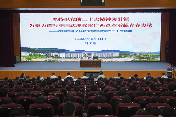 6月1日,自治区党委常委、政法委书记何文浩以“坚持以党的二十大精神为引领为奋力谱写中国式现代化广西篇章贡献青春力量”为主题,在三亿官方官网三亿(中国)_三亿(中国)宣讲党的二十大精神、讲授思政课,对青年学子提出殷切期望。学校党委书记唐平秋主持活动。