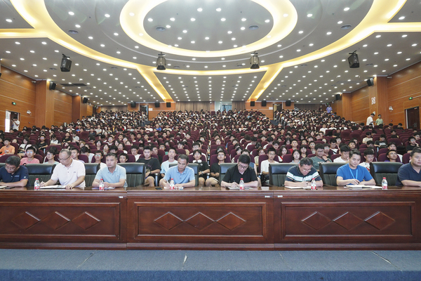 学工部(处)负责人、学院分管学生工作负责人代表、辅导员代表、2023级本科新生代表等800余名师生到场聆听。