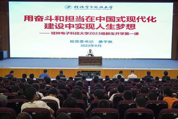 唐平秋对全体新生寄予殷切期望:一要筑牢信仰之基,以坚定信念投身中国式现代化建设。希望同学们继承弘扬老前辈用一生来践行跟党走的理想追求,在时代中不断磨砺,铸就“有钙质”的“笔挺脊梁”,锻造出“有筋骨”的青春故事。二要矢志建功立业,争当中国式现代化建设的生力军。希望同学们树立“以我所学、服务国家”的信念,始终把个人发展和国家民族的前途命运结合起来,在更大的格局中找准自己的人生坐标,担当起时代赋予的责任和使命。三要练就过硬本领,奋力书写中国式现代化青春答卷。希望同学们珍惜韶华、不负青春,努力学习掌握科学知识,提高内在素质,锤炼过硬本领,使自己的思维视野、思想观念、认识水平跟上越来越快的时代发展。他勉励同学们秉承“正德厚学、笃行致新”的校训,弘扬“艰苦创业、自强不息”的桂电精神,珍惜大学时光,坚定不移听党话、跟党走,怀抱梦想又脚踏实地,敢想敢为又善作善成,立志做有理想、敢担当、能吃苦、肯奋斗的新时代好青年,做无愧于时代、无愧于国家、无愧于人民的桂电人。