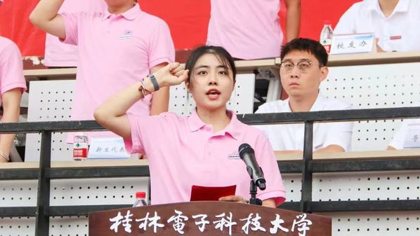 机电工程学院2023级硕士研究生、研究生支教团团长王泓芳同学作为新生代表发言,表示将会把支教精神融入到接下来的学习和生活中,展现新时代桂电青年学子的担当,承诺定会坚定信念,弘扬正气,做崇德向善的桂电人;定会独立思考,锲而不舍,做知行合一的桂电人;定会锐意进取,刻苦钻研,做开拓创新的桂电人。
