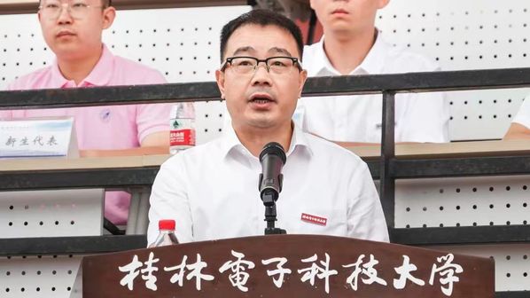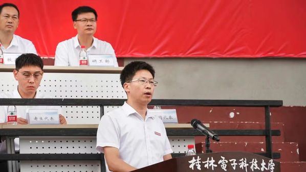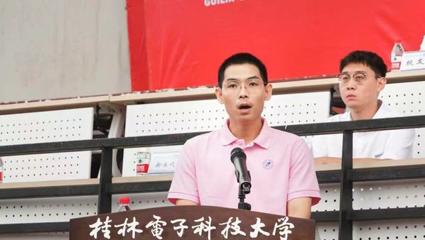 信息与通信学院2022级博士研究生王道明同学作为在校生代表发言,他分享了自己研究生学习生活心得,希望同学们能坚定理想信念,做志存高远的桂电人;能坚持刻苦钻研,做科研道路的拓荒牛;能坚守学术底线,做诚信严谨的求是者。
