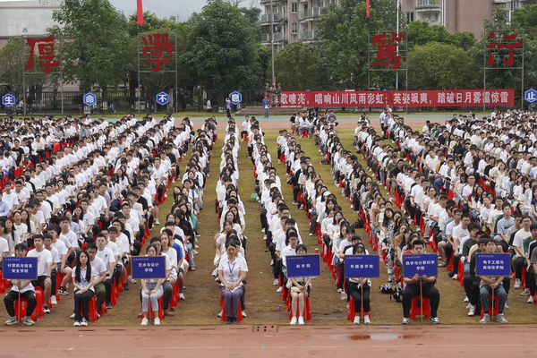 “山连着水水连着山,我们从东西南北走过来,一个目标一个理想,自强不息艰苦奋斗,攀登电子科技高峰……”开学典礼在全体师生齐唱校歌声中落下帷幕。