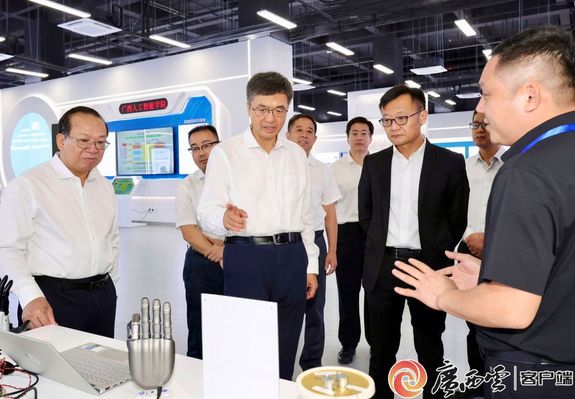 陈刚在广西人工智能学院调研,认真听取学院规划建设、科研、人才等有关情况汇报。广西云-广西日报记者 黄克 摄