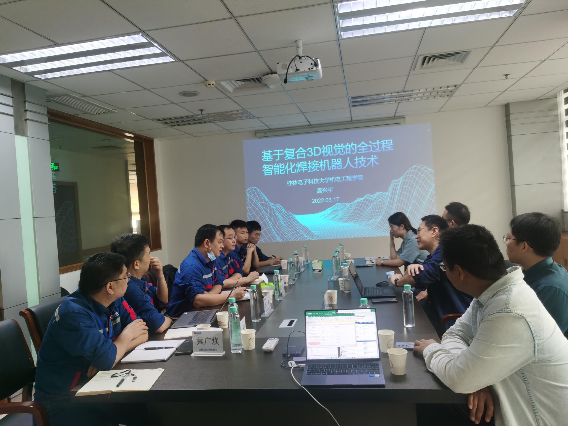 3月17日,广西玉柴机器股份有限公司工艺工程部副部长刘业通及部门相关技术人员热情接待了高兴宇一行。座谈会上,高兴宇介绍学院智能制造与机器人技术研究所在视觉检测、智能制造方向的应用成果,并表示学院期望进一步与玉柴加强合作,更加高效地开展产学研合作和面向企业需求的人才培养,互惠互利、协同共赢,为地方经济发展做出更大贡献。刘业通介绍玉柴工艺工程部在视觉技术及智能制造(设备预测性维护)等方面的应用和痛点,希望解决视觉检测、视觉定位、构建PHM预测性结构框架等技术问题,并希望学院能够向企业输送智能制造方向的人才。双方就解决企业智能制造与机器视觉、设备故障诊断等方向的技术需求开展产学研合作;就输送智能制造人才、联合策划凝练自治区重大科技专项等问题初步达成合作意向。