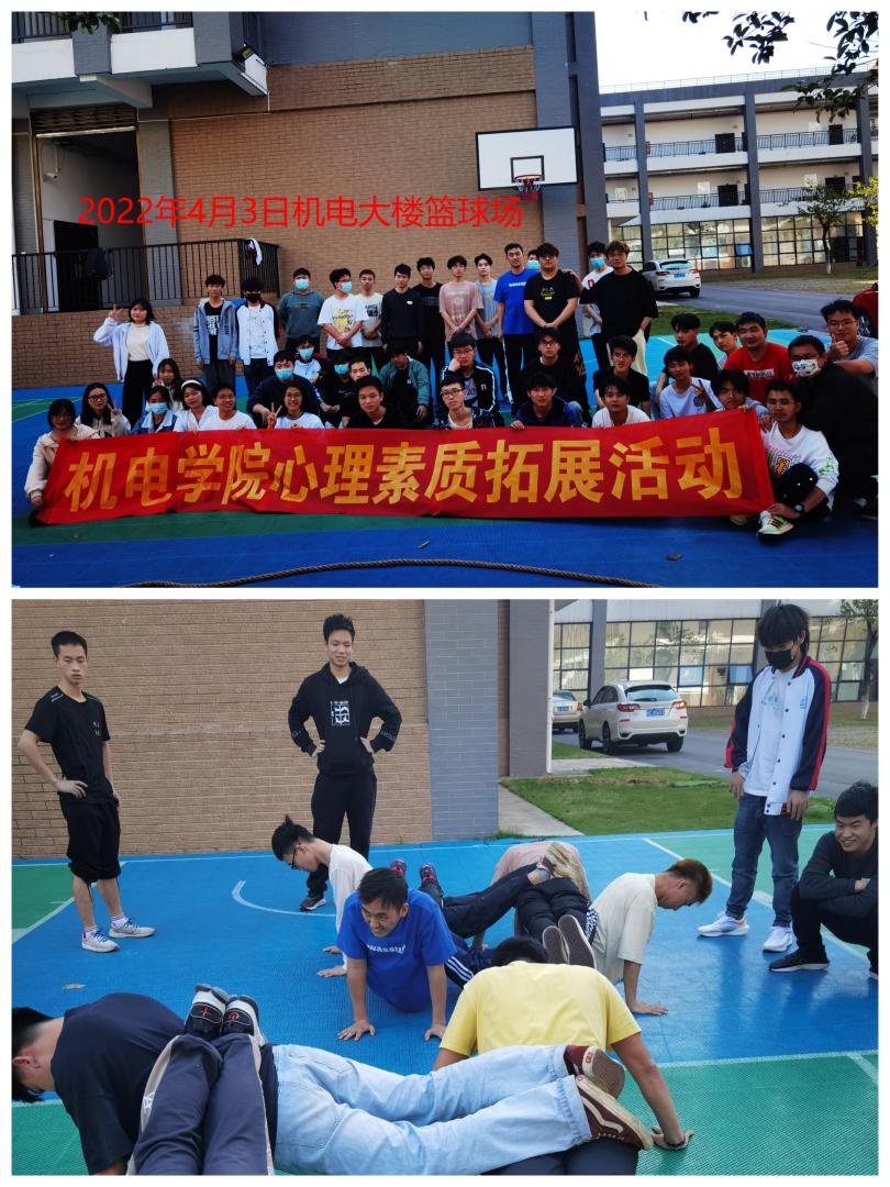 4月3日下午,机电工程学院在花江校区机电大楼篮球场开展心理健康素质拓展活动,活动由学院心理健康辅导老师组织,学院各年级心理委员及主要学生干部代表参加。