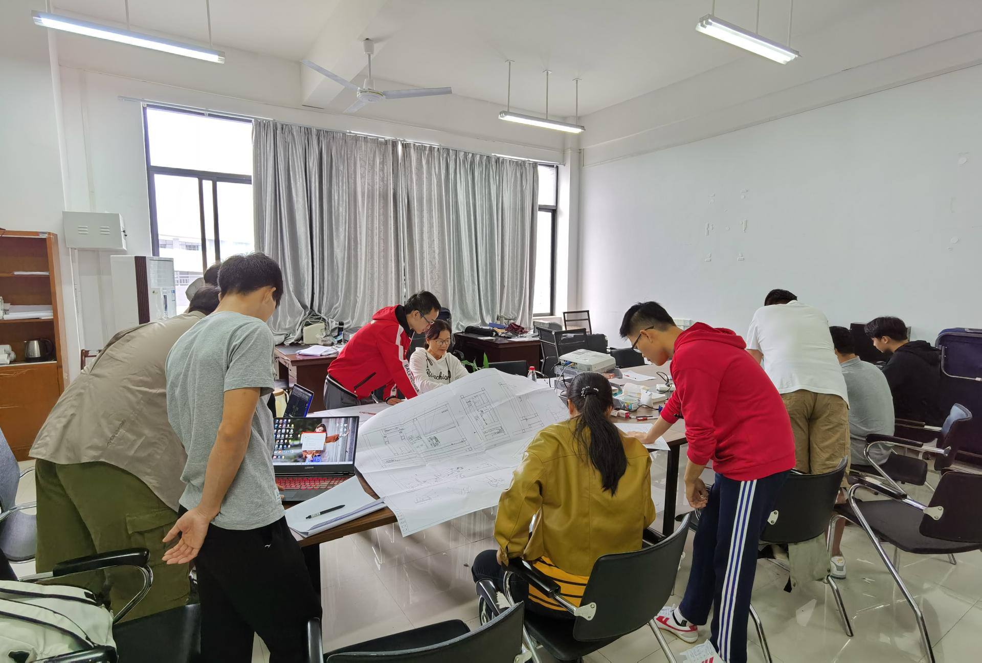毕设制图答疑过程中,两位企业工程师针对学生毕业设计项目图纸中制造工艺、材料、图形规范问题进行了细心指导,耐心解答了同学们对项目设计图纸、工艺等方面的相关问题。