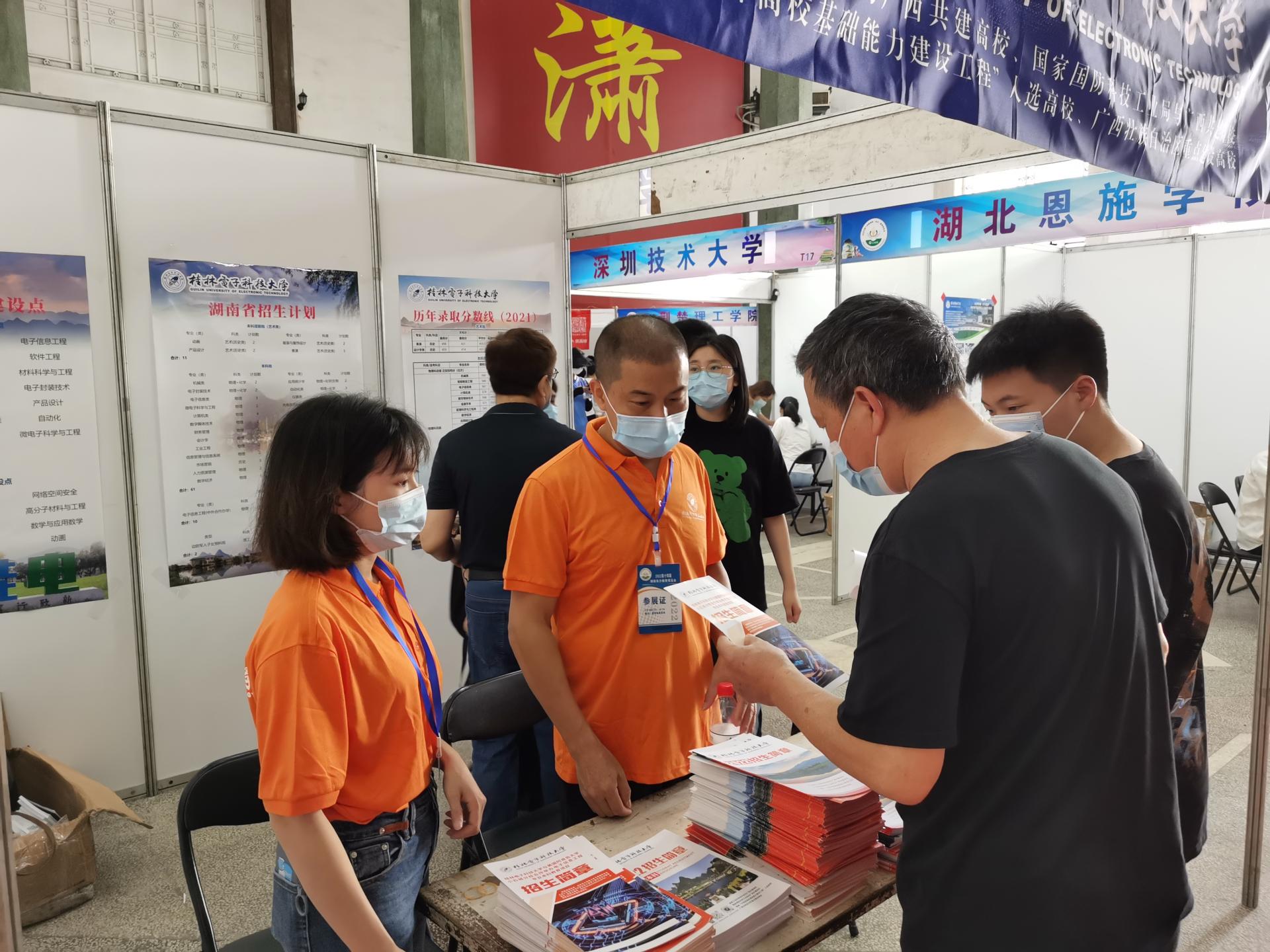 招生宣传咨询会上,招生团队老师为前来咨询的家长和考生详细介绍了学校的办学条件、人才培养、师资力量、科研成果、校园文化等方面的情况,并对近三年的学校在湖南省招生分数线和排位进行解读,为考生及家长填报高考志愿提供参考。