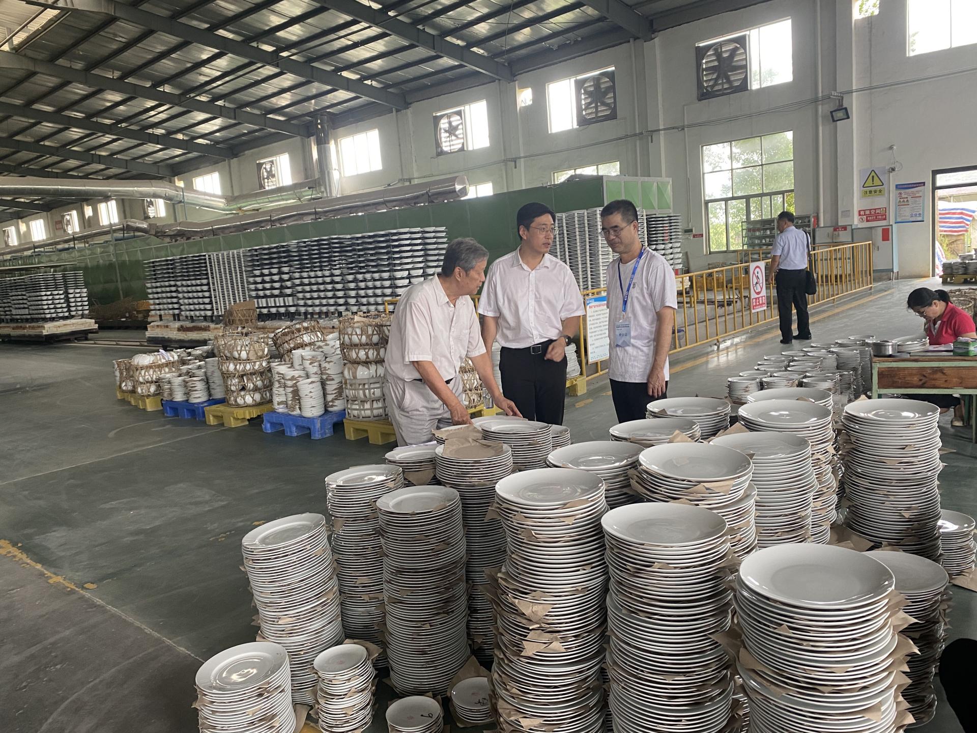 高院长一行先后实地考察了三环集团旗下的广西三元华鑫特种陶瓷有限公司、陶瓷小镇智能陶瓷装饰生产线生产基地及厂房车间,校企双方就合作推进智能工厂规划、高性能陶瓷材料生产线的自动化改造、产线日用陶瓷的表面质量检测等事项展开交流。