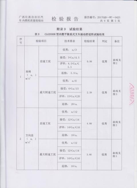 (2)解决了小吨位内燃动力叉车方向盘怠速振动控制难题,使柳工机械股份3吨、1.5吨内燃动力叉车方向盘怠速时的振动加速度有效值在原有基础上降低50%以上,产品舒适性达到国内领先水平。