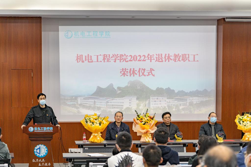 为传承机电工程学院“敬老爱老”的优良传统,12月16日下午,机电工程学院在机电大楼108会议室举行2022年退休教职工荣休仪式。学院全体领导班子、2022年退休教师刘吉虎、唐焱、徐晋勇,以及教职工代表、学生代表等参加了此次荣休仪式。仪式由学院党委书记王兰文主持。