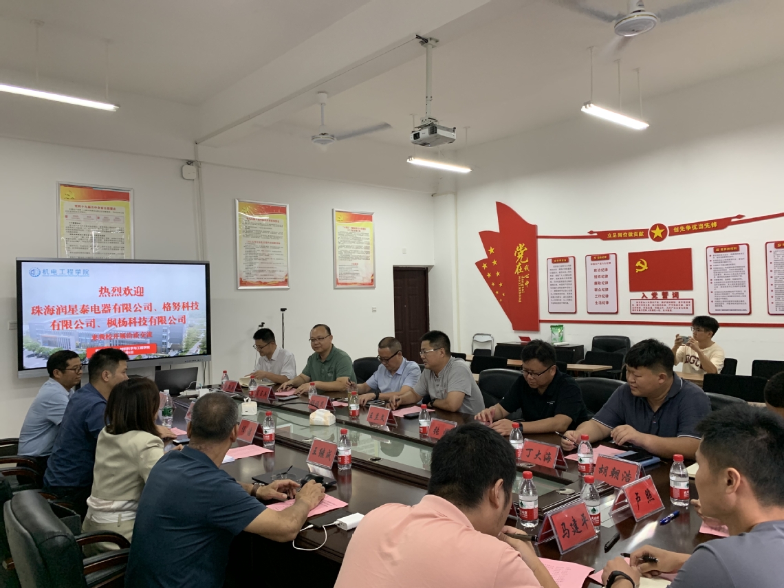 7月5日,珠海润星泰电器有限公司副总经理任洁、材料高工王继成,珠海市格努科技有限公司总经理彭岗举、珠海市枫杨科技有限公司总经理吴志平一行到校交流。机电工程学院、材料科学与工程学院接待了企业一行,并在机电工程学院420会议室召开座谈会。