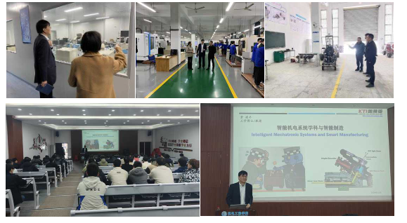 景建平教授作了题为《智能机电系统学科与智能制造》的专题讲座,详细介绍了智能机电新工科的概念、内容、方向,以及相关专业卓越工程师的培育,阐述了智能制造在中国强国战略中的重要性。他还以面向无人化工厂的电子制造业为例,介绍了智能制造工厂的创新实践。随后,景教授与在场师生进行了深入交流,分享了新工科教育改革的成功案例,为智能制造工程专业的发展指引了方向。在校期间,景教授参观了机电工程学院可靠性测试实验室、组装创新设计实验室、数控铣削实训室、数控车削实训室、车辆工程实验室等教学科研实验室,深入了解了学院在智能制造领域的教学科研情况。