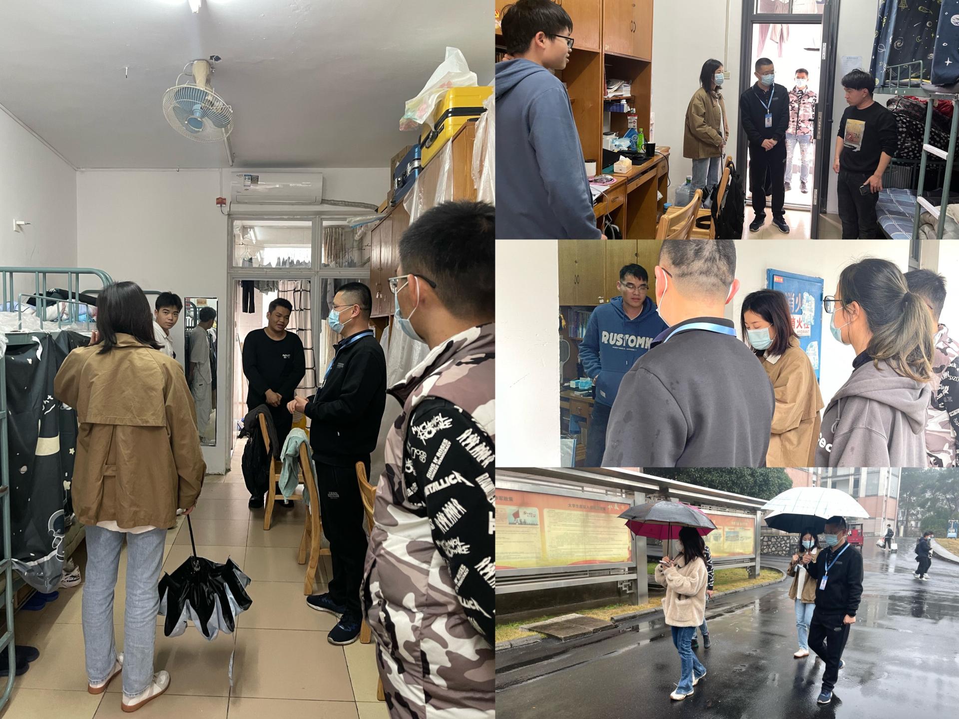 3月6日下午,材料科学与工程学院张怀刚副书记带领各年级辅导员走访花江学生宿舍了解学生返校情况,并与学生交流沟通,提醒同学们积极配合学校疫情防控工作,保持良好生活作息,宿舍多通风透气,关注身心健康,并尽快调整学习状态认真参与线上教学。