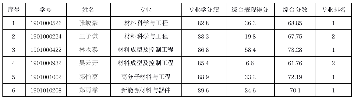 材料科学与工程学院推荐免试攻读研究生入选名单公示