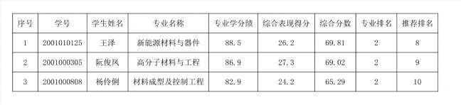 材料科学与工程学院推荐免试攻读研究生入选名单公示