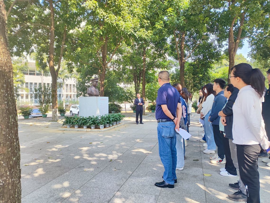 在实践教学过程中,王万奇博士带领大家来到杨科璋烈士的石像前,详细讲述了杨科璋烈士的英雄事迹,生动阐述了作为一名中国共产党员应有的责任与担当。大家对杨科璋烈士的英雄事迹深受感动和敬佩,纷纷表示要用实际行动来践行党的初心和使命。