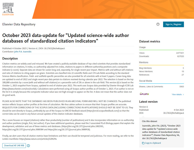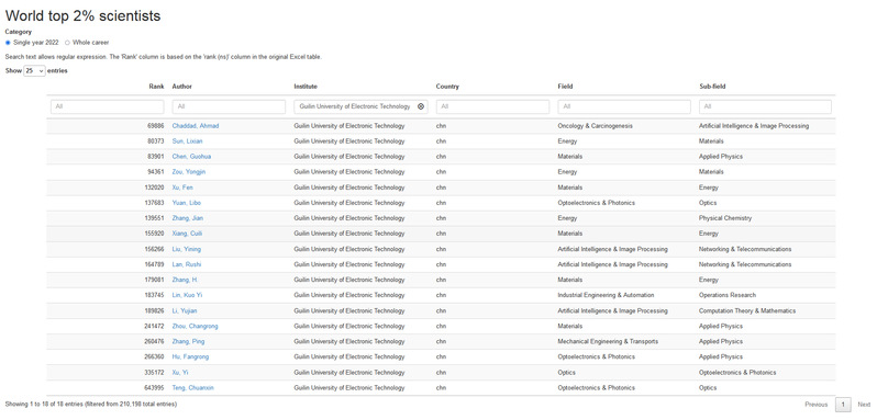 据悉,全球前2%顶尖科学家榜单由斯坦福大学联合国际权威学术出版社爱思唯尔发布,基于全球近700万名科学家的论文引用数、h因子(全称“H-index”,用于评估科研人员的学术产出数量与学术产出水平)、合著者修正的hm因子、单独或第一作者的文章引用数等综合参数,遴选出全球排名前2%的科学家,分为22个学科领域、174个细分子学科领域,为科学家长期科研表现提供了一个衡量指标,能够更客观、更真实地反映科学家的影响力。