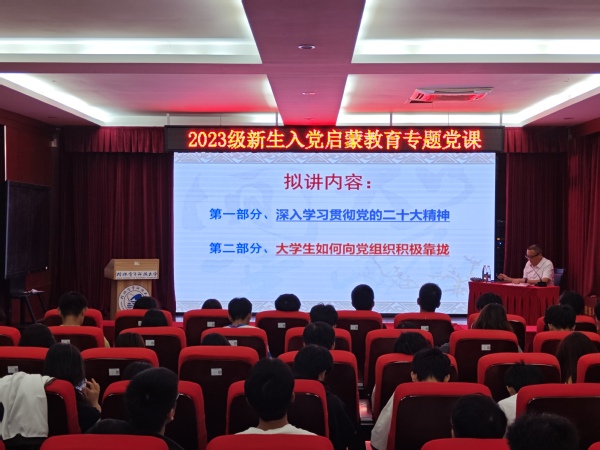 11月3日下午,材料科学与工程学院在花江校区1教106会议室开展2023级新生入党启蒙教育专题党课。党课由学院党委书记舒福灵主讲,年级辅导员及2023级新生参加本次党课学习。