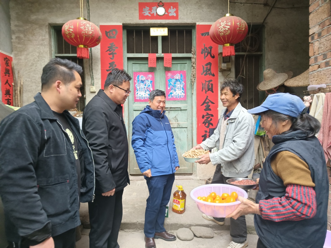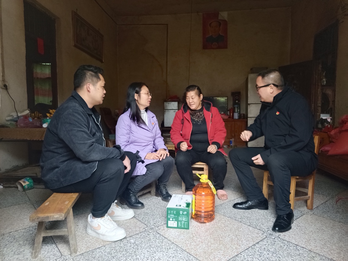 活动期间,舒福灵一行在定点帮扶村水澄村驻村第一书记韦松磊的带领下,实地走访了帮扶联系家庭户住处,与贫困户促膝交谈,了解帮扶家庭户近期生产、生活的情况,并送上慰问物资。帮扶家庭户也非常热情地跟大家分享了他们自己种植的花生、柑橘等。