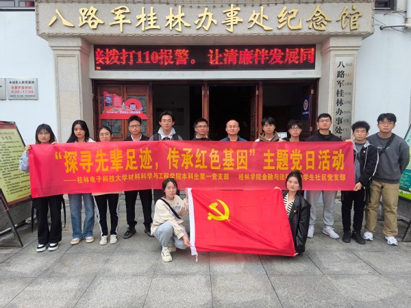 11月18日下午,材料科学与工程学院本科生第一党支部联合桂林学院金融与法律学院学生社区党支部开展“探寻先辈足迹,传承红色基因”主题党日活。共同瞻仰革命旧址,深入了解红色文化建设,感悟初心和使命。