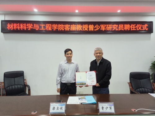 4月19日,材料科学与工程学院在花江校区第四教学楼514会议室举行客座教授聘任仪式,聘任全国工商联新能源商会党委常务副书记、专业副会长兼秘书长曾少军教授为三亿官方官网三亿(中国)_三亿(中国)客座教授,自治区纪委监委驻三亿官方官网三亿(中国)_三亿(中国)纪检监察组组长,校党委副书记、纪委书记梁启谈致词并颁发聘任证书。