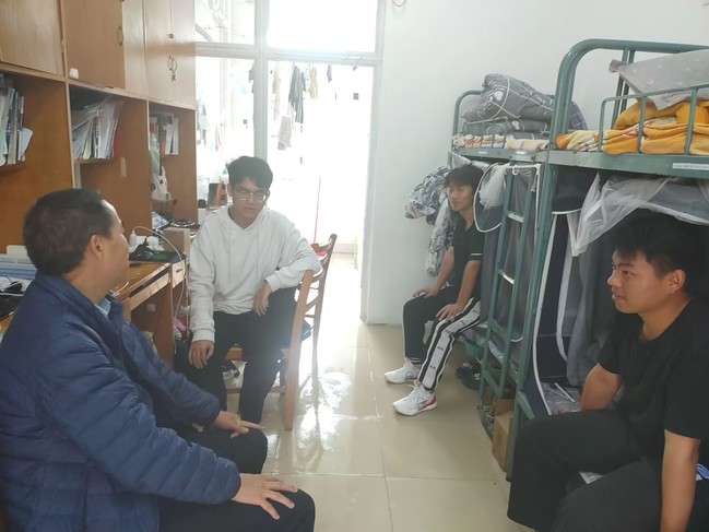 2023年以来,为更好服务2023级新同学,增强同学们的专业认同感和对学院的归属感,材料科学与工程学院教工第一党支部利用支部成员高学历、高职称、高层次人才多的优势,持续开展“师德筑梦育新人、样板表率联新生”梦想导师联系学生活动。近日,在学期即将结束之际,梦想导师唐成颖、王凤、周建华、程日光、刘呈燕、缑润娜先后去宿舍看望联系学生。老师们对支部开展支部党员联系学生宿舍的目的、做法及期望取得的成效进行了阐述,同时对2023级新同学在思想动态、学习情况、专业认知、学业规划、未来发展等方面的情况进行了解,鼓励同学们大胆就感兴趣的问题向老师提问。