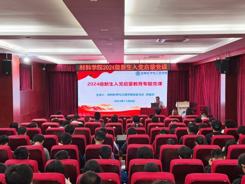 11月8日下午,材料科学与工程学院党委书记舒福灵在花江校区1教106会议室为学院2024级本科新生上入党启蒙教育专题党课。年级辅导员及2024级新生参加本次党课学习。