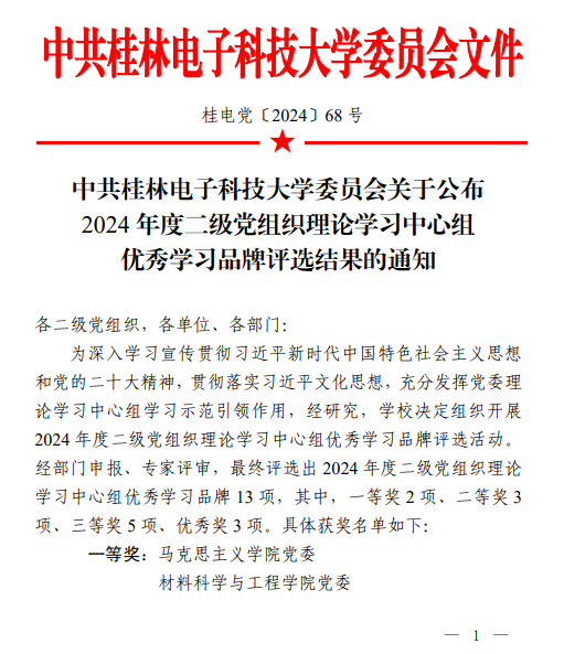近日,学校党委公布了2024年度二级党组织理论学习中心组优秀学习品牌评选结果,我院获评2024年度二级党组织理论学习中心组优秀学习品牌一等奖!