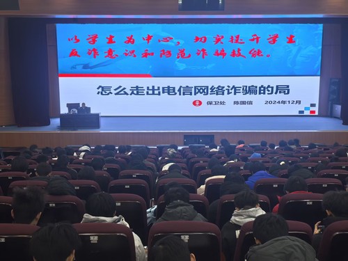 12月13日下午,材料科学与工程学院在花江校区大礼堂开展预防电信网络诈骗专题讲座,保卫处处长陈国信、学院党委副书记丁大海、学院辅导员及2024级500余名学生参加。