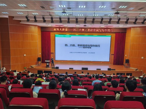 4月22日,材料科学与工程学院特邀英语考研名师王江涛老师,在图书馆三楼报告厅开展“四六级、考研背词与写作技巧”专题讲座。