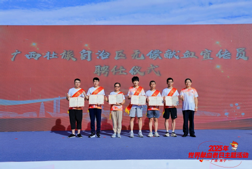 6月14日,自治区卫生健康委、自治区红十字会、南宁市献血委、南宁市卫生健康委共同主办2025年世界献血者日公益热血跑主题活动暨自治区无偿献血宣传员聘任仪式。活动上,我院王德民被聘为“广西壮族自治区无偿献血宣传员”是全区6名宣传员中桂林市唯一入选代表,也是全区高校唯一入选代表。