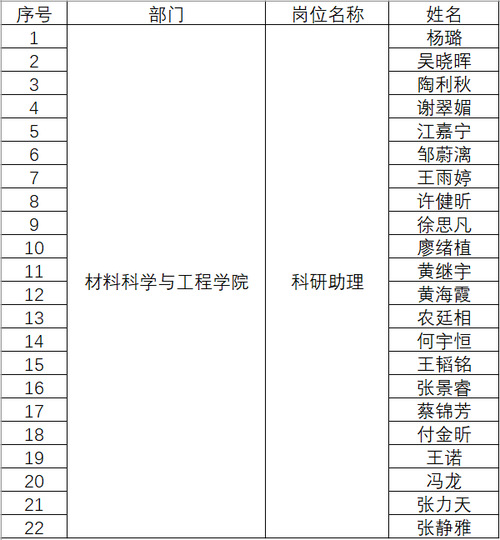 材料科学与工程学院2025年科研助理招聘拟聘人员公示