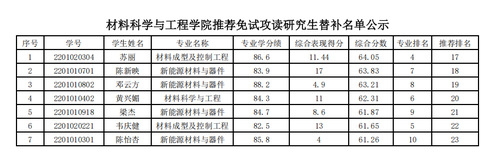 关于材料科学与工程学院2026年推荐优秀应届本科毕业生免试攻读研究生推免名单的公示