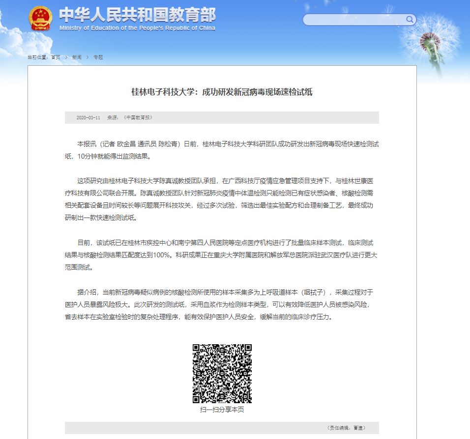教育部网站报道生物医学工程新冠病毒快速检测研究成果