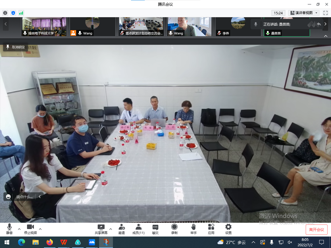 7月2日,由东南大学主办的国家重点研发计划项目“重大慢性非传染病防控研究”糖尿病的危险因素早期识别、早期诊断技术与切点研究(2016YFC1305700)项目总结会暨成果汇报会顺利召开。由于疫情原因,本次会议分为桂林会场以及南京会场,采用线上、线下的方式进行交流汇报。我院陈洪波教授牵头的国家重点研发计划课题“糖尿病无创血糖筛查及监测设备、AGEsP 流动注射分析仪的研发及临床应用推广(2016YFC1305703)”属于该项目的课题三,课题组科研人员参加了本次线上会议。