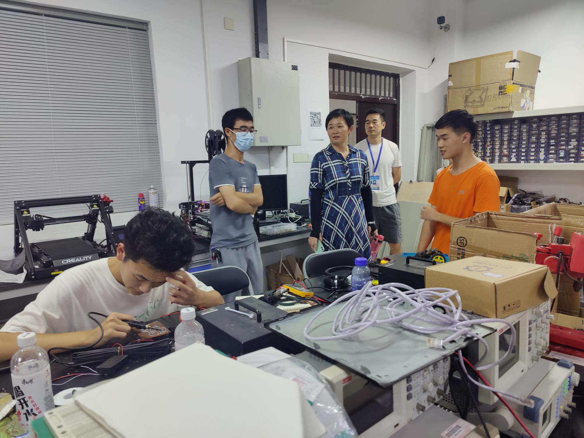 7月28日下午,董惠梅副书记带领全体辅导员走访了学院生物电子创新基地和学生宿舍,看望电赛参赛队员和暑期留校学生,转达学院领导对留校学生的关心,现场了解同学们的学习、生活等情况。
