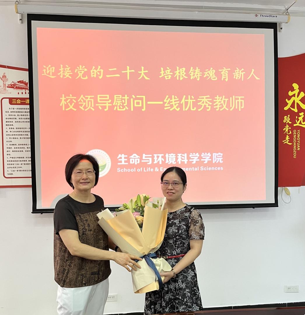 9月7日上午,为庆祝第38个教师节,校党委副书记陈贵英到学院看望慰问一线教师,向优秀教师代表送上鲜花和节日祝福。