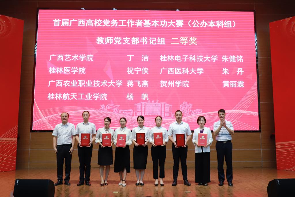 9月15-16日,学校在花江校区图书馆报告厅举行首届党务工作者基本功大赛,设有专职组织员、教师党支部书记、学生党支部书记3个组别,分为基础知识测试、微党课展示、党建工作案例展示3个环节,全校共有44名基层党务工作者参赛。经过激烈角逐,我院唐琼获得组织员组二等奖,王忠获得学生党支部书记组二等奖,李学军获得教工党支部书记组三等奖。我院首批全国党建工作样板支部党支部书记朱健铭代表学校参加首届广西高校党务工作者基本功大赛教工支部书记组,并获得二等奖的优异成绩。