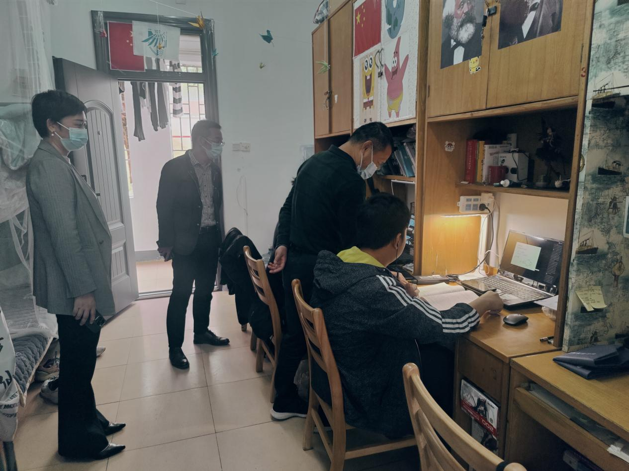 走访过程中,学院领导一行对学生线上上课、疫情防控、宿舍日常卫生等情况进行了全面了解。陈洪波院长与同学们亲切交流,对大家关心的学习与生活上的问题一一给予解答,同时叮嘱同学们严格遵守疫情防控要求,非必要不出宿舍,养成良好的生活卫生习惯,注意劳逸结合,加强户外体育锻炼,有困难及时向学院和老师反映。