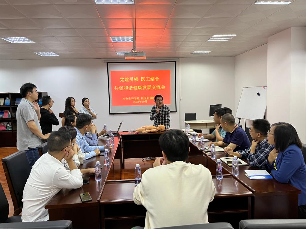 10月18日,桂林医学院附属医院麻醉科党支部书记、主任王永旺和手术室党支部书记、护士长唐俐带队到我院调研交流,学院党委书记李炳论和院长陈洪波热情接待了来访客人,双方以“党建引领 医工结合 共促和谐健康发展”为主题进行了深入交流。学院专业教师代表、辅导员等参加交流。