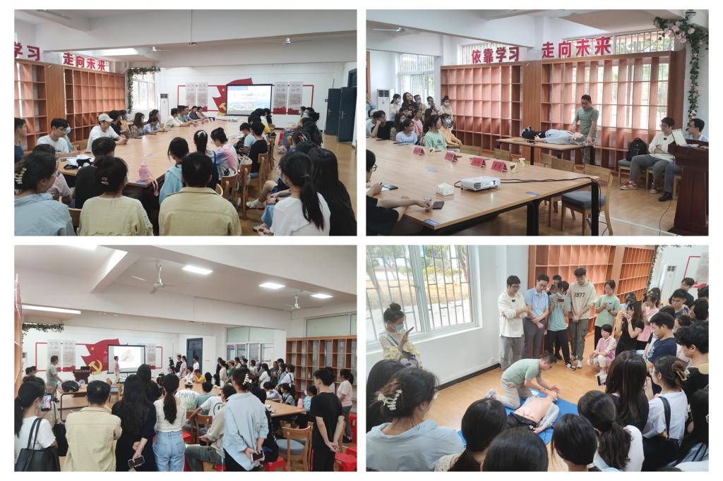 培训中,医生们详细介绍并演示了心肺复苏(CPR)、自动体外除颤器(AED)使用方法以及海姆立克法等急救常识与操作技能,一一回答了同学们的现场提问,并指导同学们进行了分组模拟演练,现场气氛热烈,效果良好。