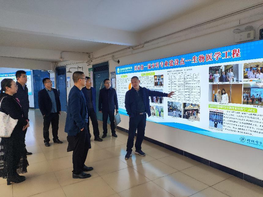调研会前,陈洪波院长带领杨彦副处长一行参观了学院展板,着重介绍了学院历史沿革、师资情况及实验室建设。
