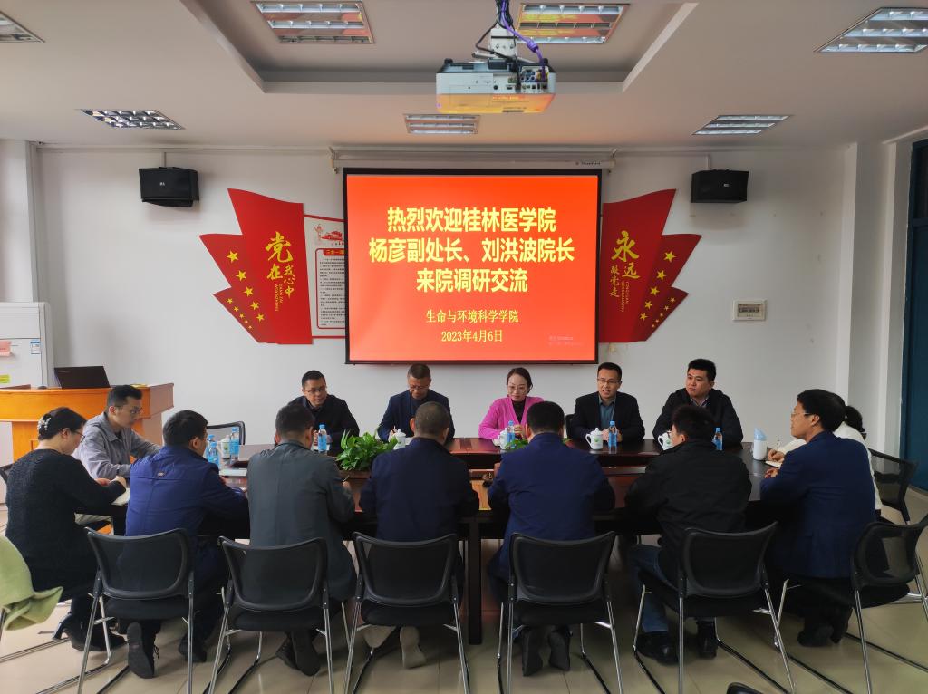 4月6日上午,桂林医学院科技处副处长杨彦,桂林医学院检验医学院院长、第二附属医院副院长刘洪波等一行5人到我院调研交流。我院党委书记李炳论,院长陈洪波,副院长李华、韩国成,生物医学工程系教师代表参加了交流。