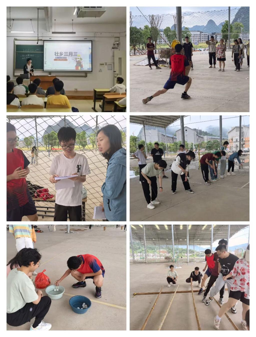 为落实铸牢中华民族共同体意识教育,4月22日,学院团委学生会组织开展了“多彩三月三,浓浓壮乡情”民俗主题活动,吸引各年级同学参加。一是通过主题班会播放民俗活动视频,让同学们进一步了解传统节日,同时开展中华民族共同体意识宣传教育,希望同学们时刻牢记中华民族一家亲,将中华民族共同体意识内化于心,外化于行。二是组织开展抛绣球、对唱山歌、滚铁环、竹竿舞、知识答题等民俗文化体验活动,加强同学们对壮乡三月三传统节日的了解,深切体会壮乡节日文化。
