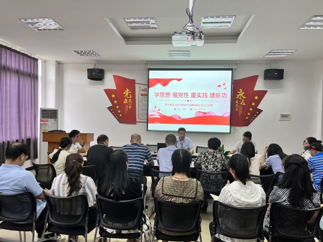 6月16日,学院党委在11教B区403-2召开党员大会,学院党委书记李炳论为全体教职工党员上题为“学思想 强党性 重实践 建新功”的专题党课。