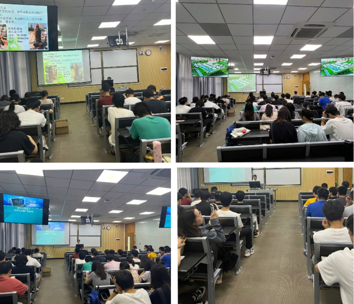 炎夏8月,骄阳似火,为充实学生的实践实习经历,让学生全面了解城市污水处理厂工艺设计、设备选型和日常运行的管理工作,熟知城市生活污水处理工程设计中的疑难环节和绘图要求,切实提升学生的工程设计能力,环境科学与工程系结合生产实习工作安排,特邀桂林市排水公司的黄云鸿高工、石旭高工和费正华高工等三位资深工程师,在暑假小学期间进校为学生开展工程实践实习指导,他们分别从污水处理厂的日常运行管理、自控技术在污水处理中的优化应用、污水处理厂的设计工作内容和基本要求,以及污水处理厂设计绘图规范等四个方面为学生进行了深入解读,这不仅对进一步提升学生的工程实践能力帮助很大,为下一阶段的毕业设计教学工作奠定了良好的基础,也受到学生们的热烈欢迎。