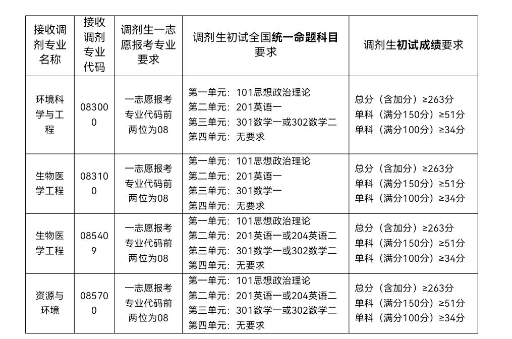 3.调剂生一志愿报考专业、初试全国统一命题科目及初试成绩要求;