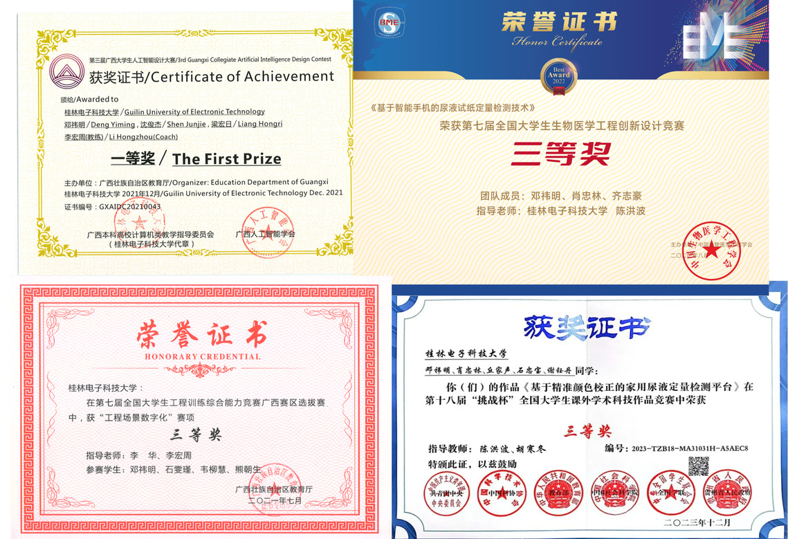 曾任生物电子创新基地主席。曾获第十八届“挑战杯”全国大学生课外学术科技作品竞赛三等奖、第九届中国国际“互联;网+”大学生创新创业大赛广西赛区金奖、第七届全国大学生生物医学工程创新设计竞赛三等奖、第三届广西大学生人工智能设计大赛一等奖等奖