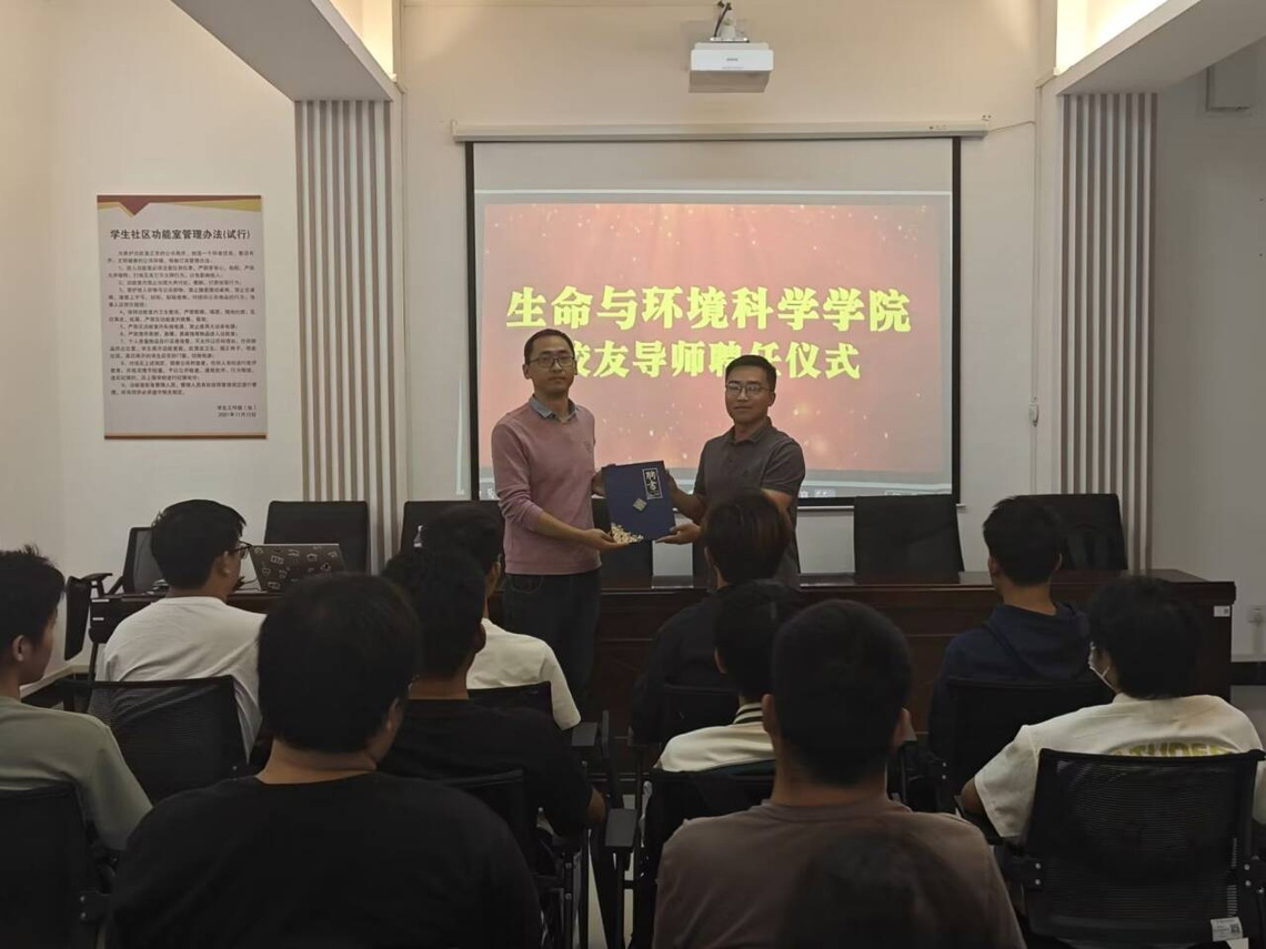 会前,举行了校友导师聘任仪式,2023级辅导员孙茗轩为陈刚校友颁发了本科生职业生涯规划校友导师聘书。